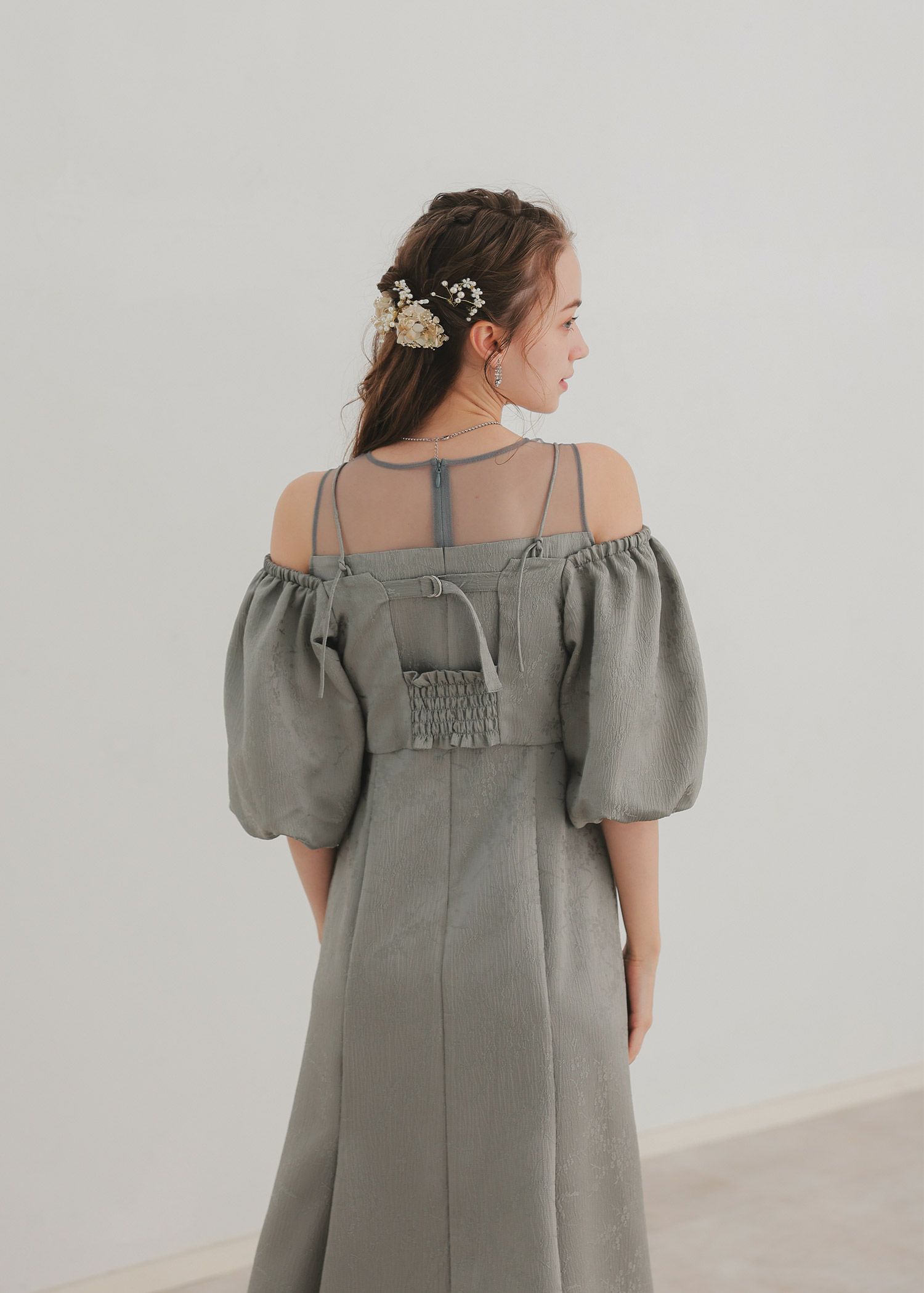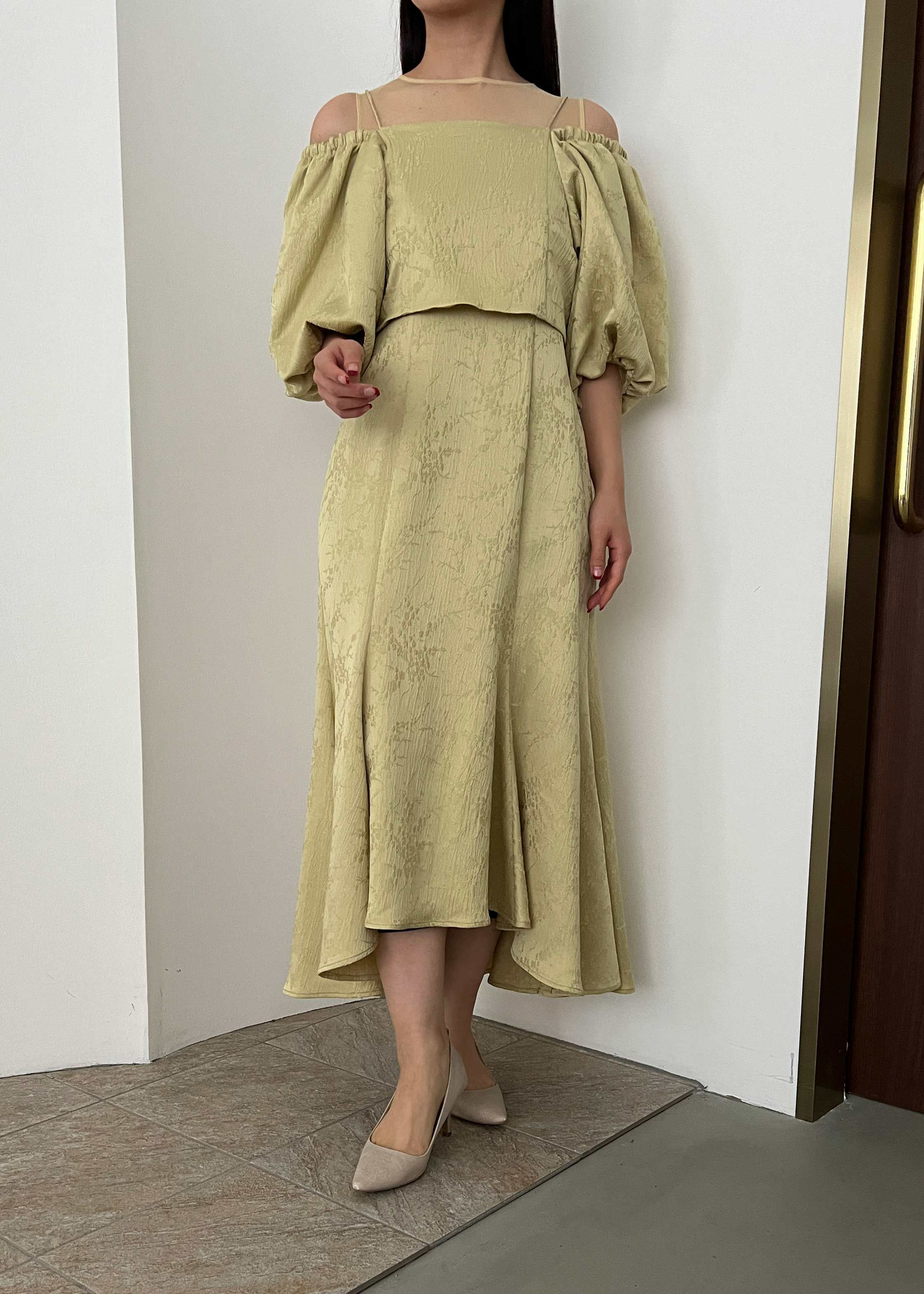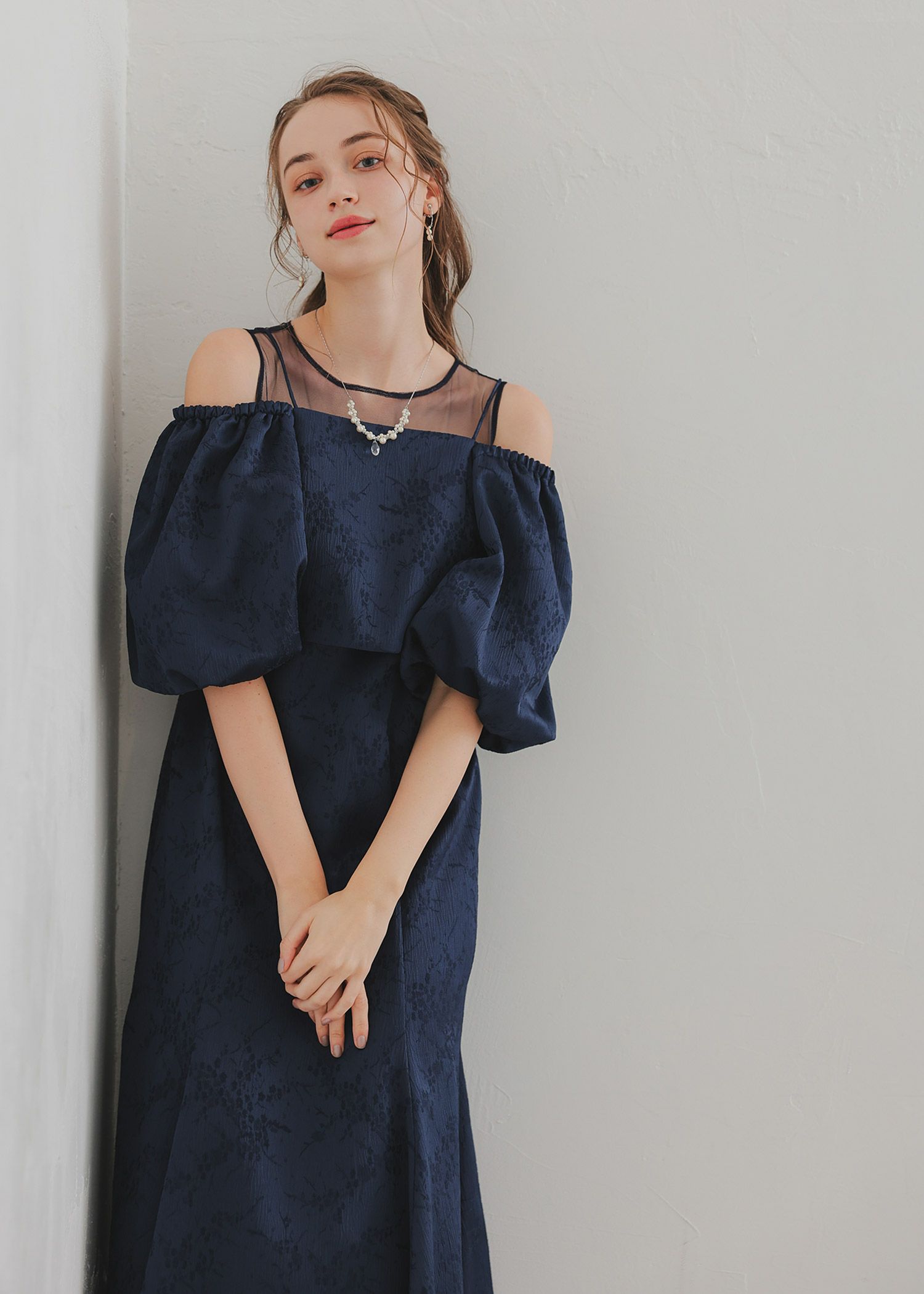 商品説明 マルチに着回しが出来るブラウスとノースリーブワンピを合わせたセットアイテム。 ヴィンテージライクな雰囲気を醸し出すジャガード素材で上品なお呼ばれドレスになります。 ブラウスは落ち感のある、ふんわりとしたお袖が特徴的なオフショルデザイン。 お昼の結婚式参列する方にご安心いただけるよう 肩の部分がゴム入りなっている為、肌見せを隠した着用もできます。 背中は伸縮性があり、ベルト付きになっている為調節可能になっております。 ワンピースはデコルテ部分をシアー素材にすることでヘルシーに。 裾のラインを前後差のあるフィッシュテールにすることで足長・美脚効果アップ◎ フォーマルなワンピースドレスになっている為、お持ちのジャケット等で合わせるのもおすすめです♪ カジュアルなパーティーシーンだけでなく、デイリーにも使える大人のドレス。 デートやホカンスなど普段使いにもオススメ。 ※ノースリーブデザインでお作りしている為、結婚式の場合は、羽織りなどで肩を隠してご着用ください。 ※商品画像は、光の当たり具合やパソコンなどの閲覧環境により、 実際の色味と異なって見える場合がございます。予めご了承ください。 おすすめのシーン カジュアルな結婚式・二次会・お呼ばれ・成人式・同窓会・ 女子会・謝恩会 パーティー・演奏会・お食事会など多様なシーンのコーディネートに使えます。 商品詳細 【備考】 <ブラウス> ・裏地なし ・後ろデザイン伸縮性あり、ベルト付き調節可能 ・袖ゴム入り <ワンピース> ・裏地なし ・後ろファスナー ・伸縮性なし 洗濯方法:クリーニング店にご相談ください。 ※その他お取り扱いに関しましては、商品に付属のアテンションタグをご覧ください。 原産国:中国 お問い合わせ品番:25597