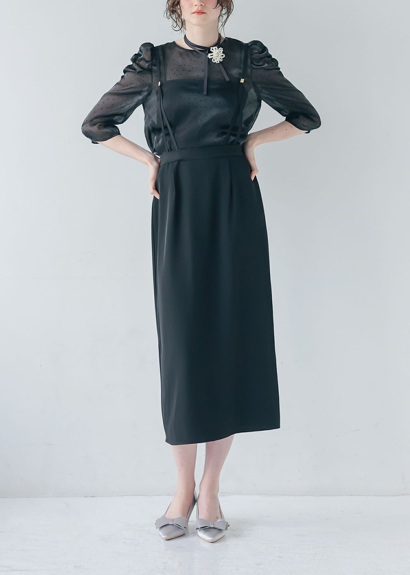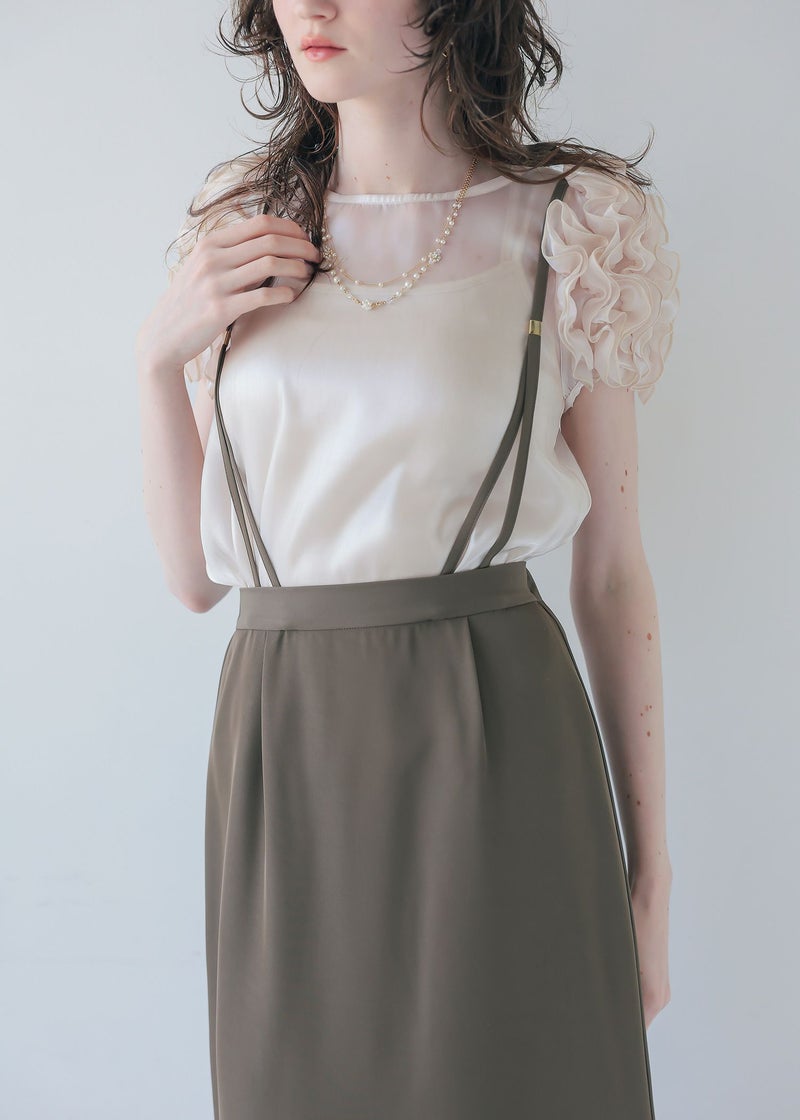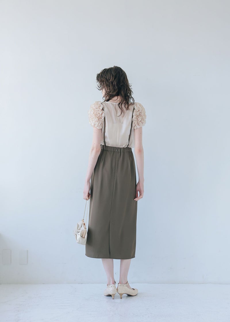 サスペンダー付きのIラインスカート。