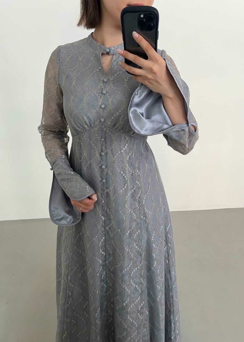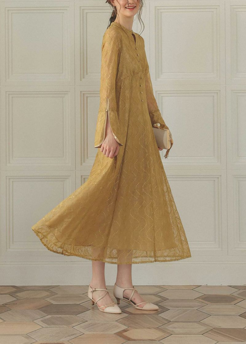 華奢で繊細な表情のレース素材には、アンティークゴールドのような