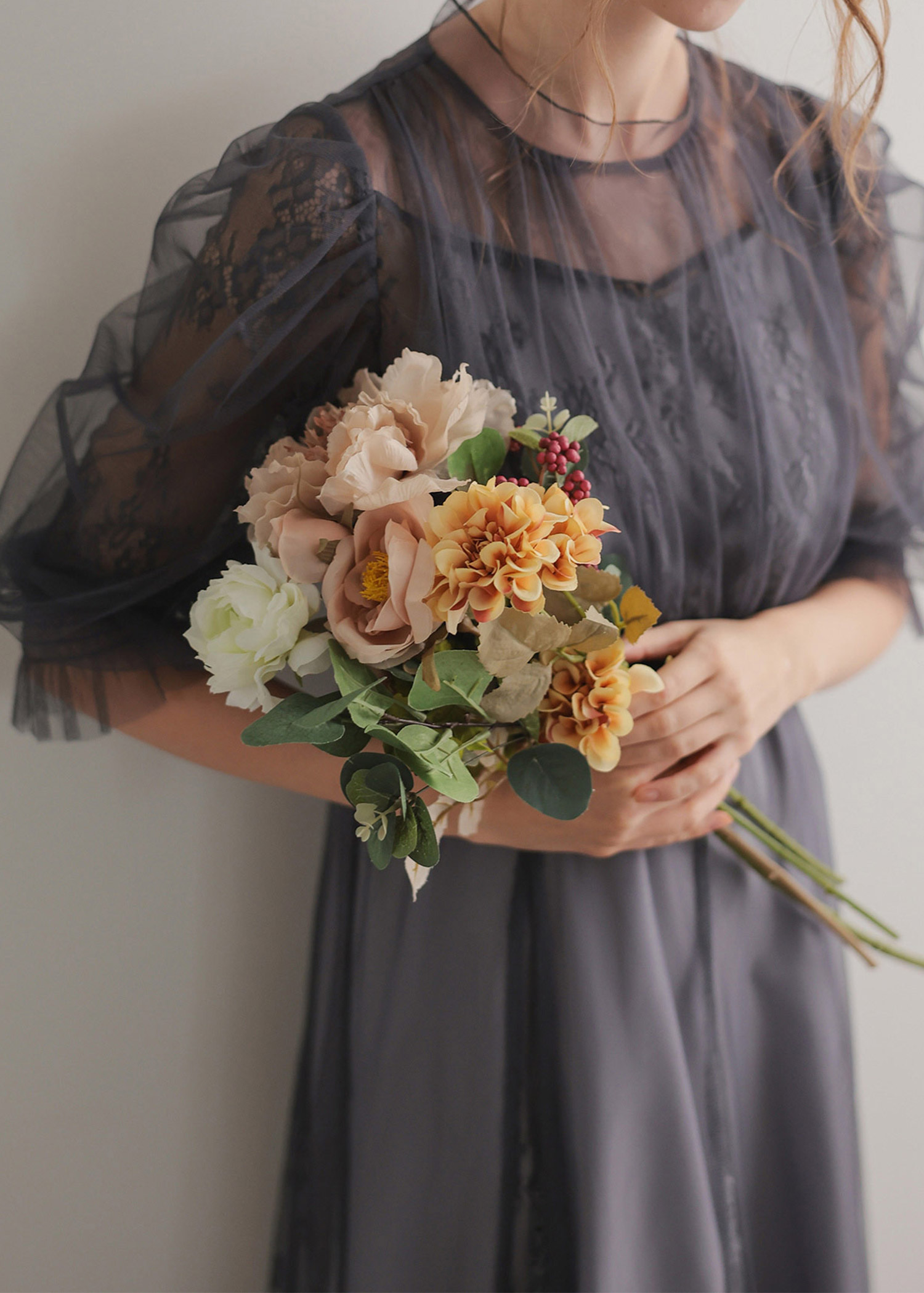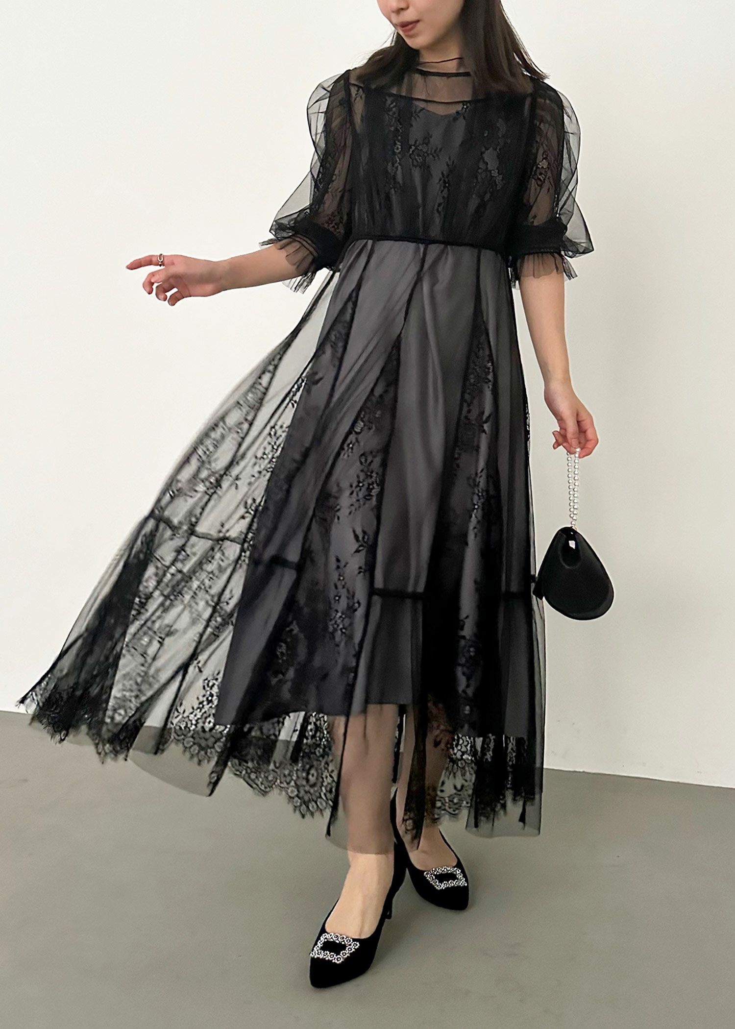 商品説明 柔らかなフラワーモチーフレースとチュール素材を組み合わせたドレス。 チュールがエアリーに広がりきるだけで華やかな印象になります。 レースの切り替えや胸元のピンタック、レディライクなパフスリーブなど、 360℃どこから見ても絵になるクラシカルなディティールを贅沢に詰め込みました。 動くたびにスカートが広がるシルエットで、まるで花弁をその身に纏うかのようなドレスです。 裾のスカラップカットは上品さを演出。 気になる二の腕をおしゃれにカバーし、ウエスト周り全体にゴムが入っていてストレスフリーも実現。 ※ハンガー掛けの商品画像が実際の商品のお色味に近くなっております。 ※商品画像は、光の当たり具合やパソコンなどの閲覧環境により、 実際の色味と異なって見える場合がございます。予めご了承ください。 外国人着用モデル身長172cm グリーン着用SNAP身長158cm ブラック着用SNAP身長158cm モカチャ着用SNAP身長153cm チャコール着用SNAP身長153cm おすすめのシーン 結婚式・披露宴・二次会・同窓会・謝恩会など 多様なシーンのコーディネートに使えます。 商品詳細 【備考】 レースドレス ・生地伸縮性なし ・バックファスナー仕様 ・バックネック ホック1つあり ・袖口シャーリングゴム仕様 インナー ・生地伸縮性なし ・後ろ身幅部分ゴムあり ・肩紐アジャスターあり 洗濯方法:クリーニング店にご相談ください。 ※その他お取り扱いに関しましては、商品に付属のアテンションタグをご覧ください。 原産国:中国