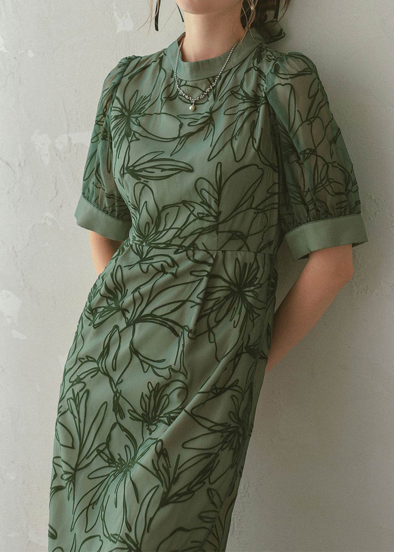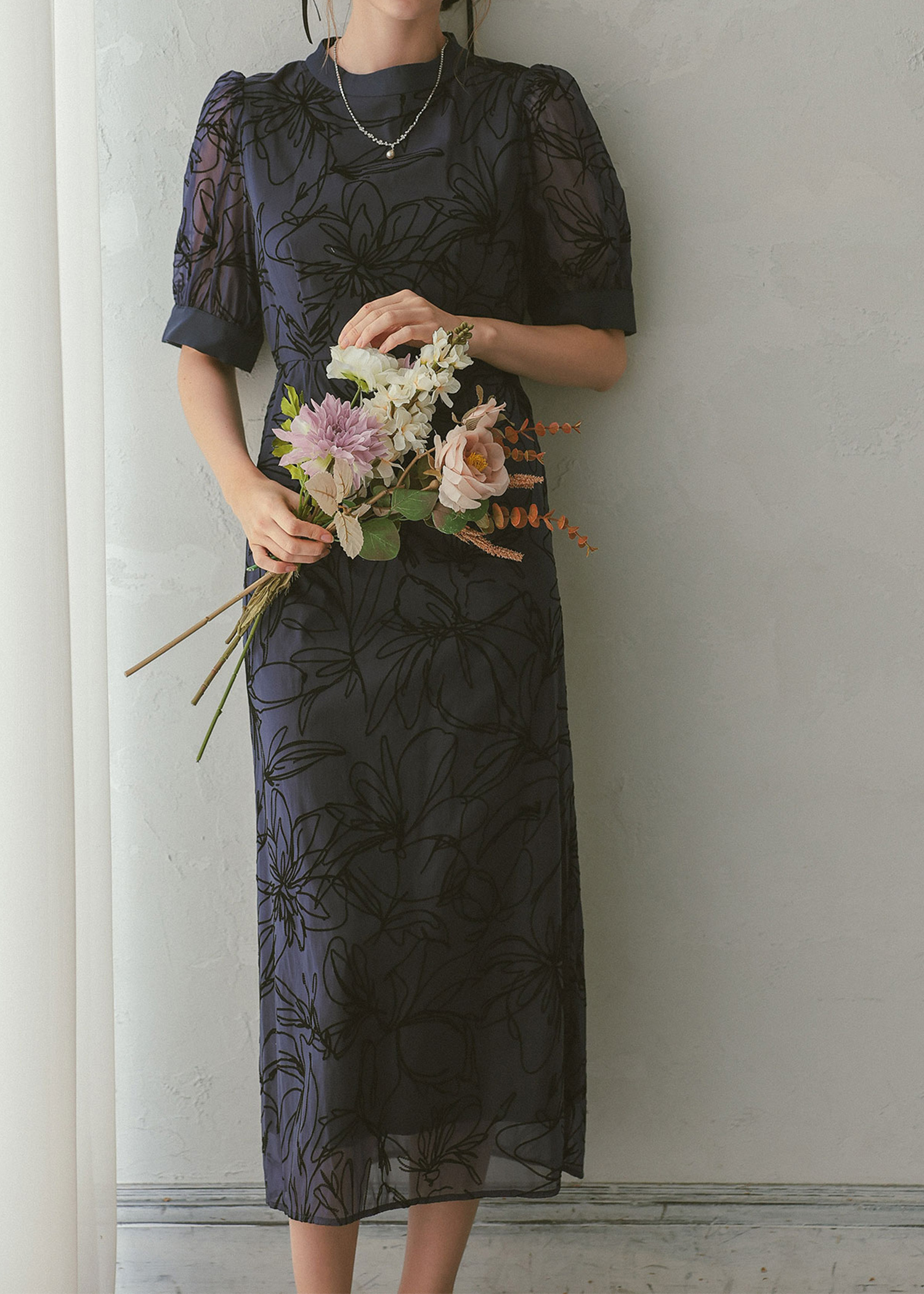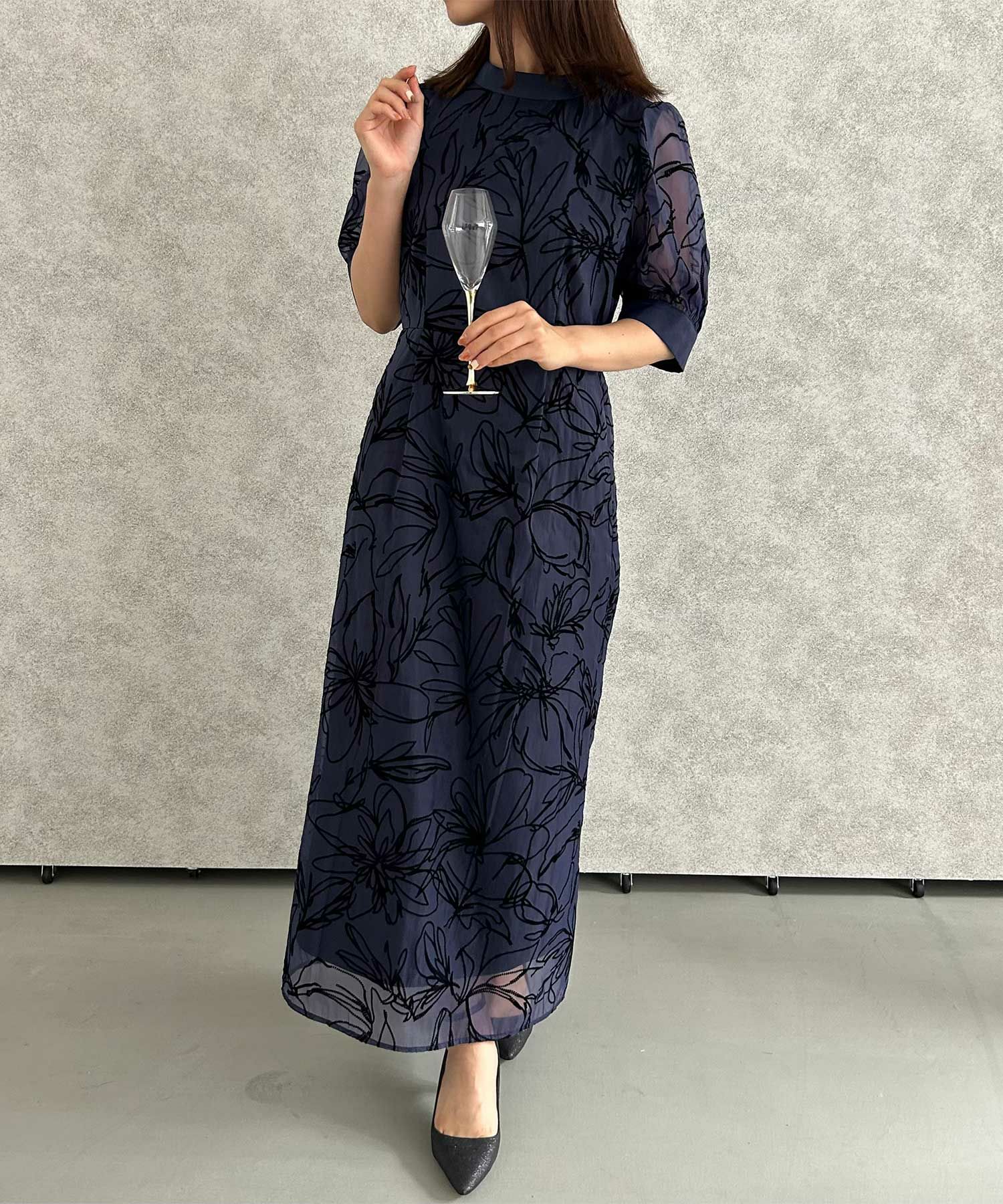 大人っぽい雰囲気の花柄Iラインドレス