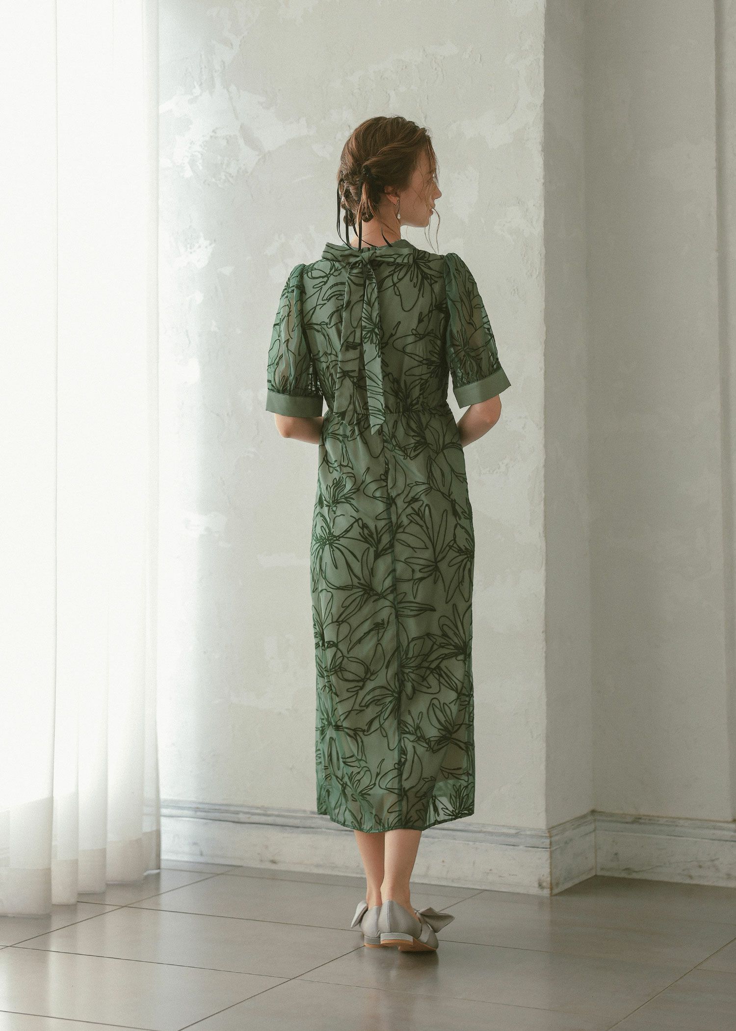 大人っぽい雰囲気の花柄Iラインドレス