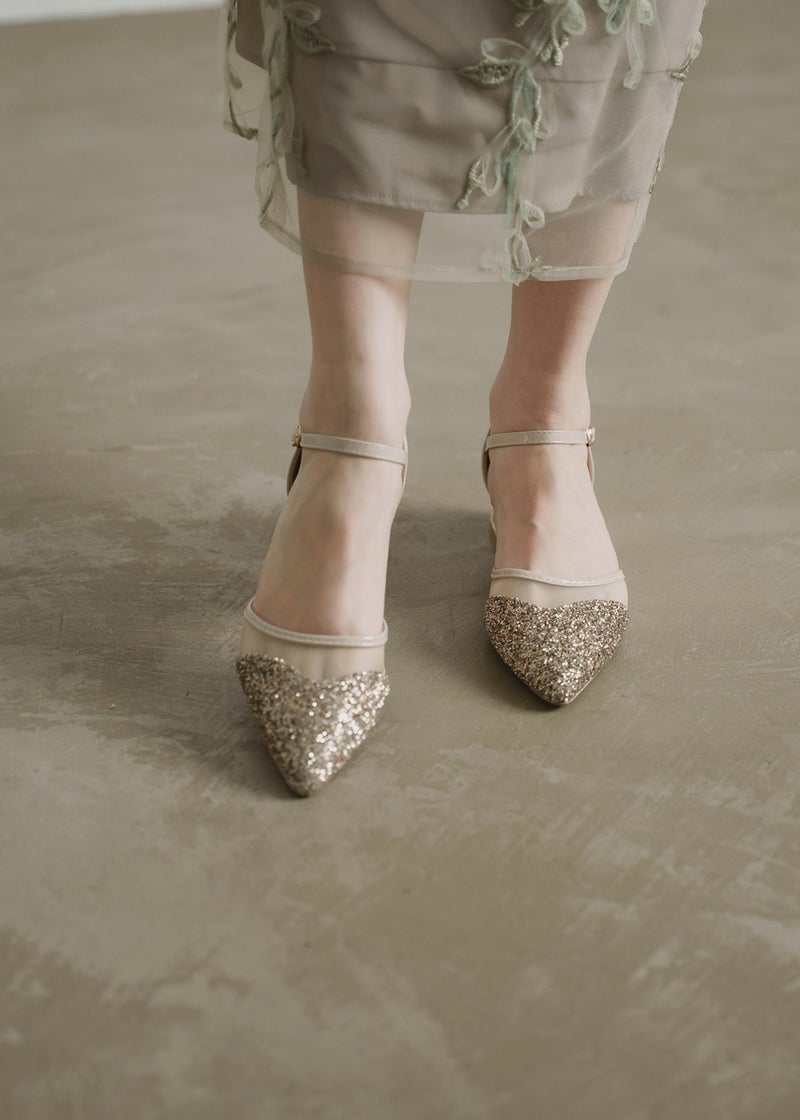 つま先からキラキラ輝くラメデザインとシアー素材を掛け合わせたことで