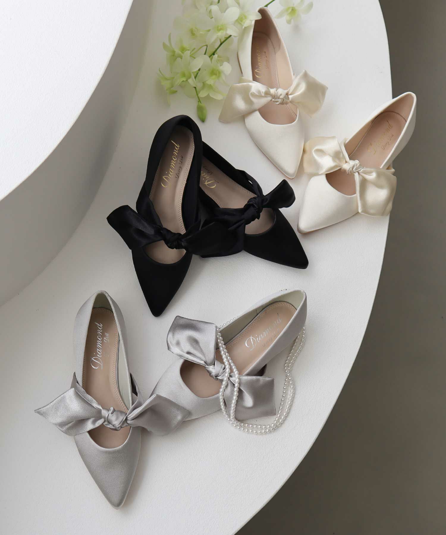 可愛らしいリボンが程よいアクセントに。シンプルだけど存在感ある1足。