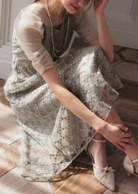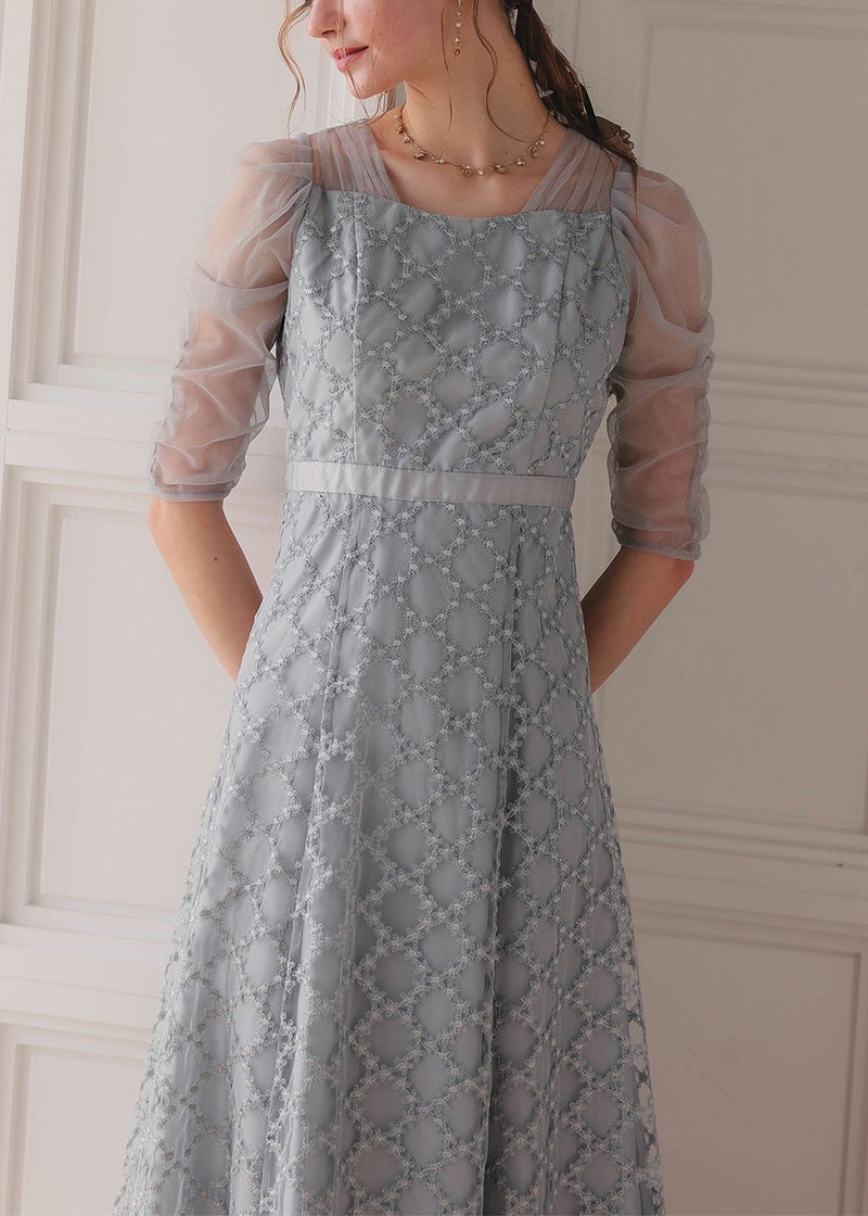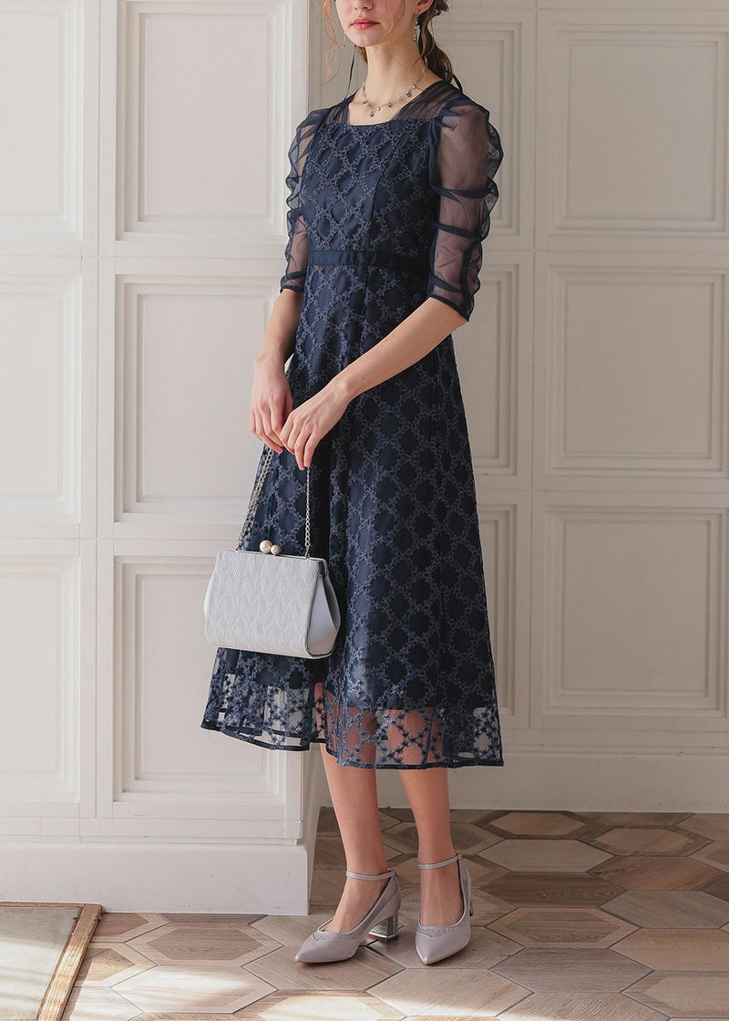 商品説明 煌びやかなダイヤレースが目を引く華やかなドレス ダイヤ柄状にお花があしらわれた刺繍レースが、可憐なフェミニンさを演出します。 刺繍にラメ糸が織り込まれている事で、オケージョンらしい華やかさも◎ 着るだけでぱっと華やいだ気分にさせてくれるドレスです。 少しハイウエストのフィット&フレアラインで、可愛らしく、またスタイルを良く見せてくれるデザイン。 甘さを中和するような、狙わずともセンシュアルな隙が作られるスクエアネックで、デコルテの美しさも惹き立ちます。 デコルテが美しく見えるデザインなのでネックレスとの相性抜群◎ 肩の部分や袖には、シアーなチュール素材を使用し、抜け感をプラス。 ギャザーを寄せたデザインで、肩まわりや二の腕を華奢見せしてくれるのも、嬉しいポイント♪ 結婚式のおよばれや、卒業パーティーなど華やかなシーンにぴったりなドレスです。 ※ハンガー掛けの商品画像が実際の商品のお色味に近くなっております。 ※商品画像は、光の当たり具合やパソコンなどの閲覧環境により、 実際の色味と異なって見える場合がございます。予めご了承ください。 おすすめのシーン 結婚式・披露宴・二次会・同窓会・謝恩会など 多様なシーンのコーディネートに使えます。 商品詳細 【備考】 ・裏地あり ・伸縮性なし ・後ろウエストゴム入り ・バックファスナー仕様 洗濯方法:クリーニング店にご相談ください。 ※その他お取り扱いに関しましては、商品に付属のアテンションタグをご覧ください。 原産国:中国 お問い合わせ品番:24921