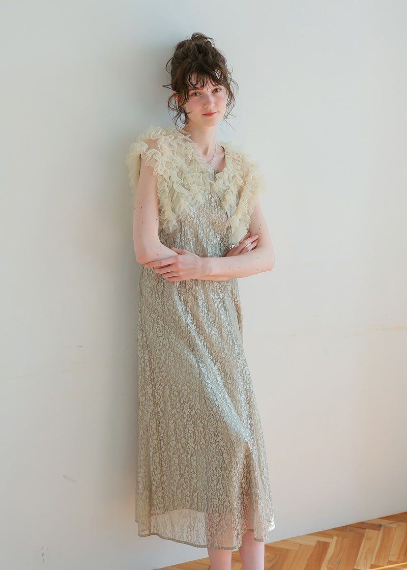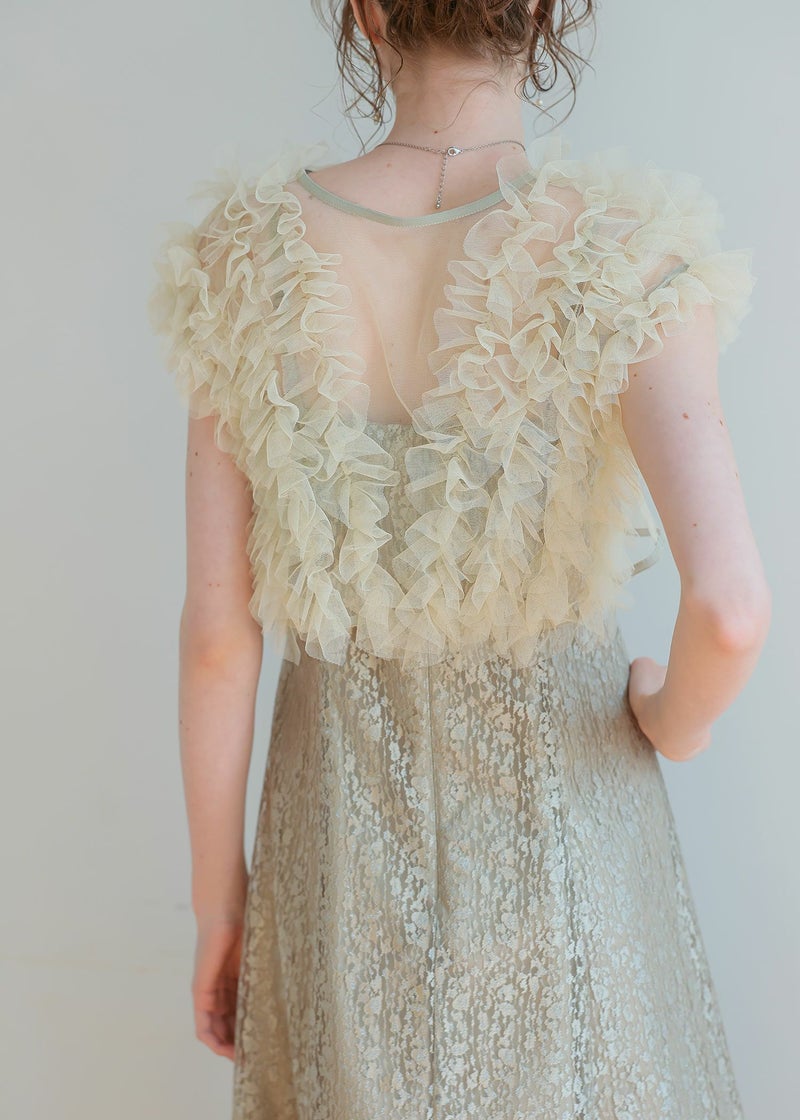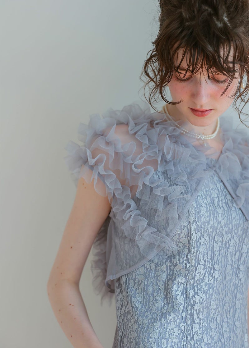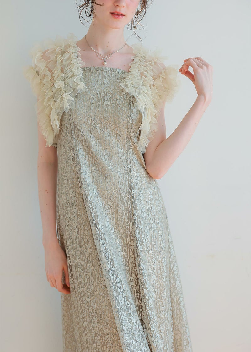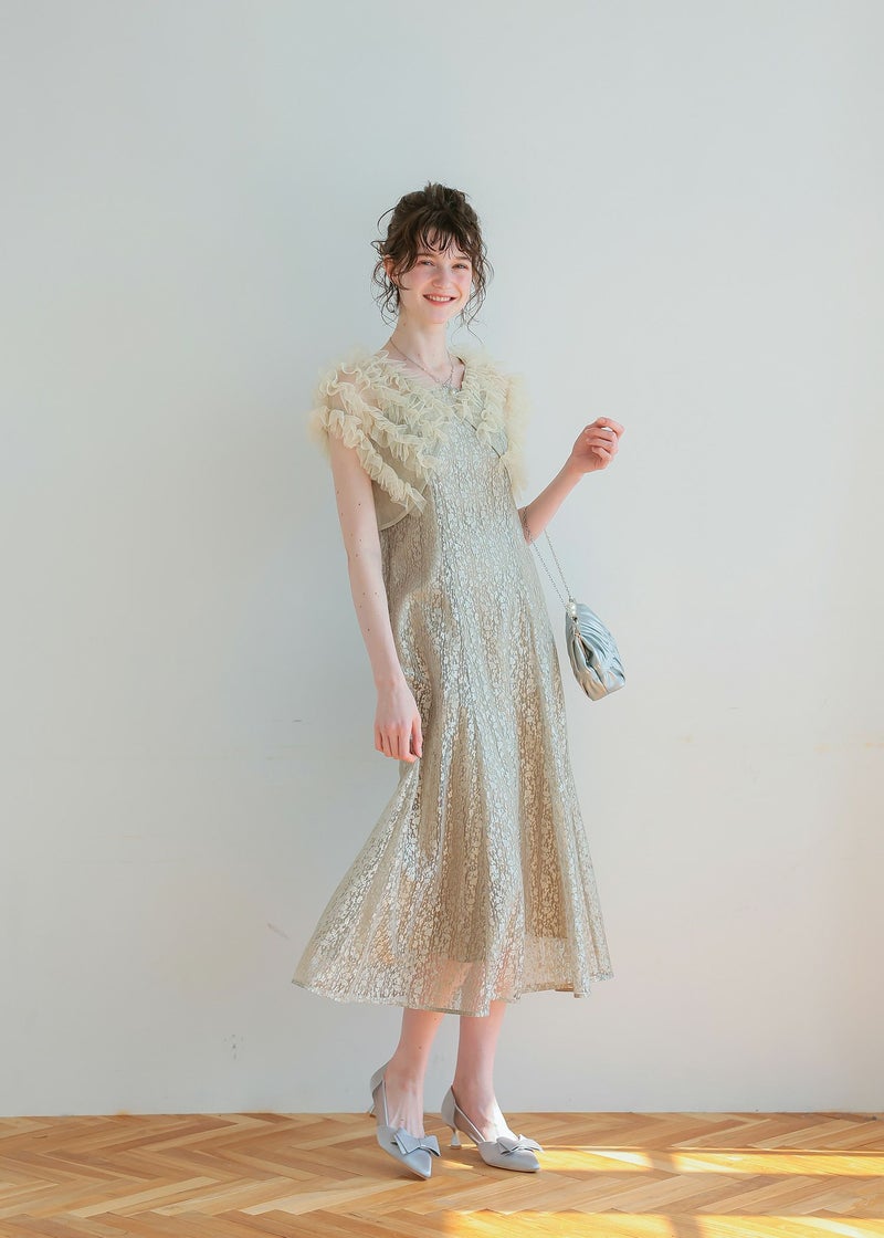 商品説明 ボリュームのあるフリルデザインと繊細なディテールが魅力の ボレロとワンピースがセットになったドレス。 フロントに施された繊細なチュールフリルがふんわりと肩を包み込み 二の腕をさりげなくカバー。 軽やかな透け感が上品な抜け感を与え、エレガントな雰囲気に。 ワンピースは抽象的な珍しい柄がアクセントとなり 光の角度によってラメがさりげなく煌めくため、派手になりすぎないデザインに。 身体のラインを拾いすぎず縦のラインをスッキリ見せてくれるため、脚長効果も期待できます。 ワンピースとボレロは分かれており、それぞれ単体での着用が可能です。 ※商品画像は、光の当たり具合やパソコンなどの閲覧環境により、 実際の色味と異なって見える場合がございます。予めご了承ください。 屋外の写真は通常より明るく見えています。 おすすめのシーン 結婚式・1.5次会・二次会・披露宴・お呼ばれ・成人式・同窓会 女子会・2次会謝恩会・パーティー・デート・演奏会・お食事会・ 発表会など多様なシーンのコーディネートに使えます。 商品詳細 【備考】 〈ボレロ〉 ・裏地なし ・透け感あり 〈ワンピース〉 ・裏地あり ・伸縮性なし ・後ろ背中部分ゴム入り ・背中心ファスナー 原産国:中国 お問い合わせ品番:25628 着用モデル身長176cm