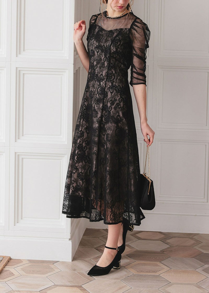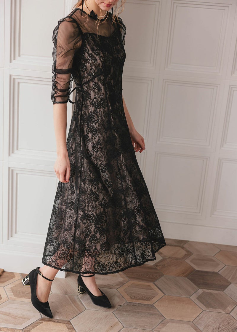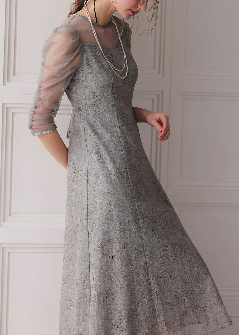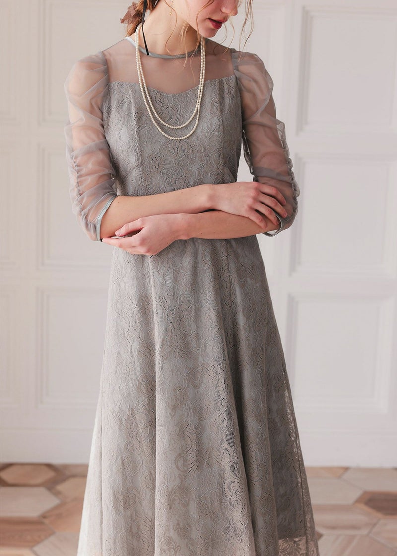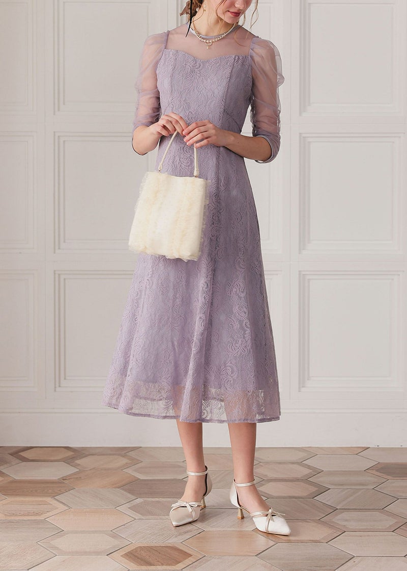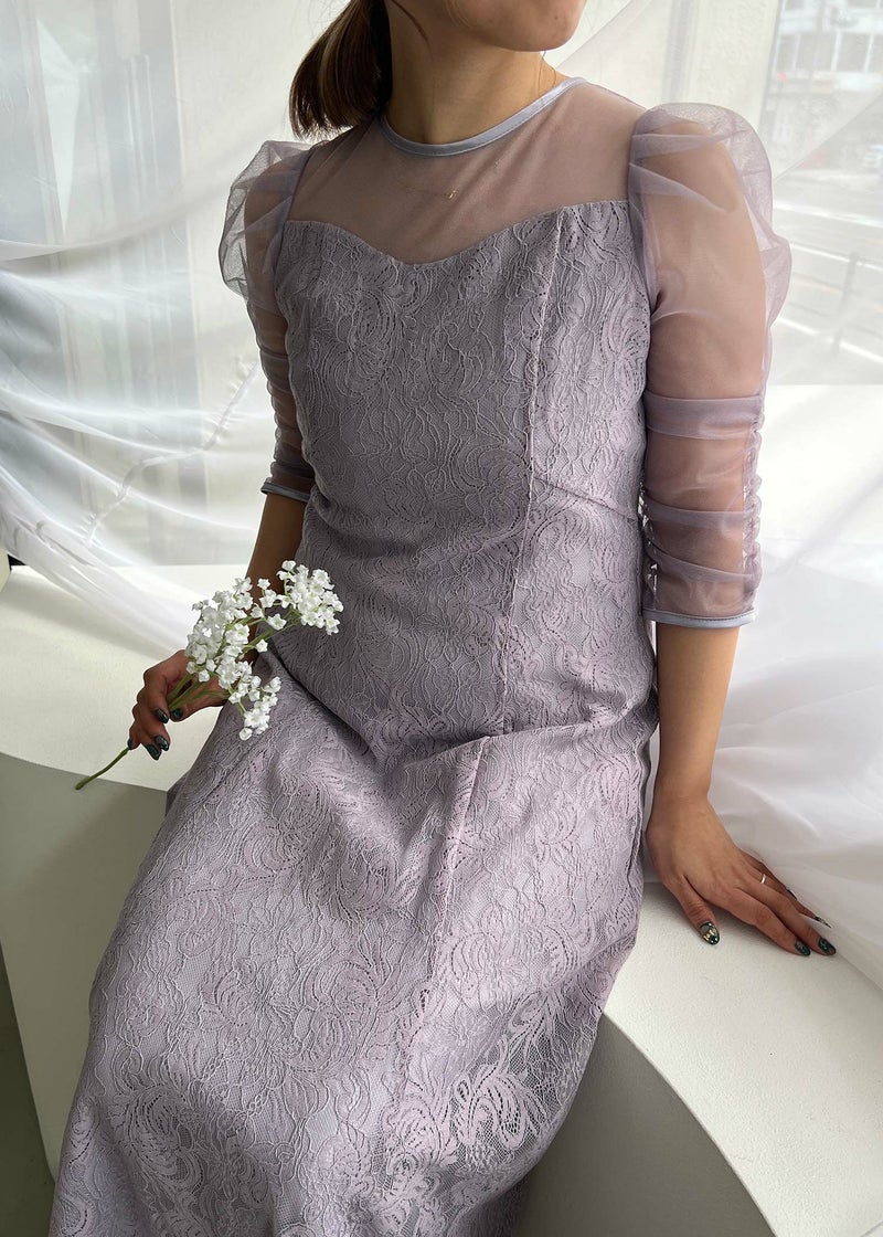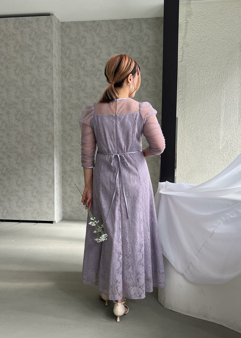 商品説明 繊細なレースを使用した、華やかな総レースドレス。 袖とデコルテ部分にはシアーなチュール素材を使用し、抜け感をプラス。 ギャザースリーブが肩回りを華奢見せしてくれるのもうれしいポイントです。 ウエストリボンは光沢のあるサテンを使用し、バックスタイルのさりげないアクセントに。 スカート部分は程よい分量感のフレアラインで、広がり過ぎずすっきりとした印象でありながら歩く度に美しく揺れ、上品な印象を演出します。 ・華やかな女性らしいラベンダー ・シックで都会的なネイビー ・くすみのある柔らかい印象のカーキ ・上品で落ち着いたブラックベージュ 以上の4色展開でご用意いたしました。 ※画像後方の商品画像が実際の商品のお色味に近くなっております。 ※商品画像は、光の当たり具合やパソコンなどの閲覧環境により、 実際の色味と異なって見える場合がございます。予めご了承ください。 おすすめのシーン 結婚式・1.5次会・二次会・披露宴・お呼ばれ・成人式・同窓会・ 女子会・謝恩会 パーティー・演奏会・お食事会・ 発表会など多様なシーンのコーディネートに使えます。 商品詳細 【備考】 ・裏地付き ・光沢なし ・デコルテ部分に透け感あり ・伸縮性なし ・バックファスナー 原産国:中国 お問い合わせ品番:82652 着用モデル身長174cm