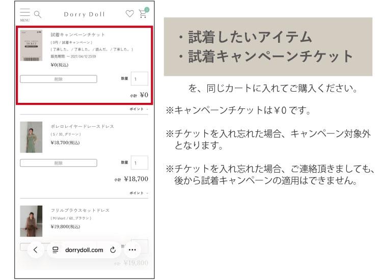 「試着キャンペーン対象外」となります。