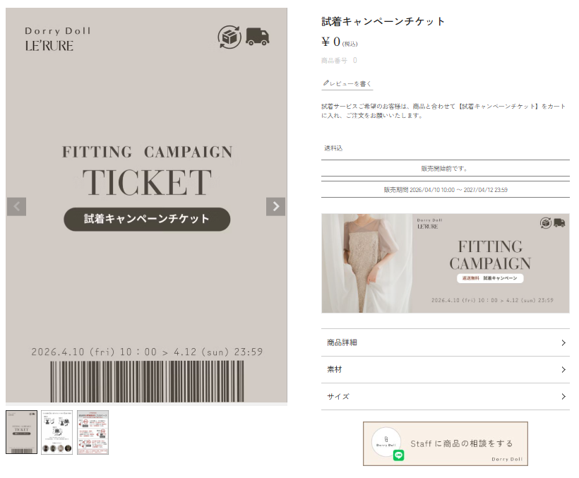 LE’RUREの商品もキャンペーンの対象です。ご試着いただけます。