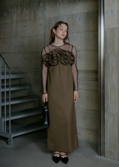 Wavy frill bustier stripe dressのレビュー