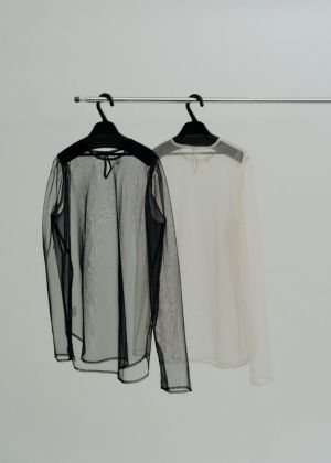透け感は結構あるので、薄い、柔らかく着たい人にはお勧めだが、二の腕カバーとか少し恥ずかしいと思う人はもう少し濃いめのシアーの方がいいなとおもった。肩の縫い目が丁度いい場所にきてガタイがよく見えないのがとてもいいと思う。