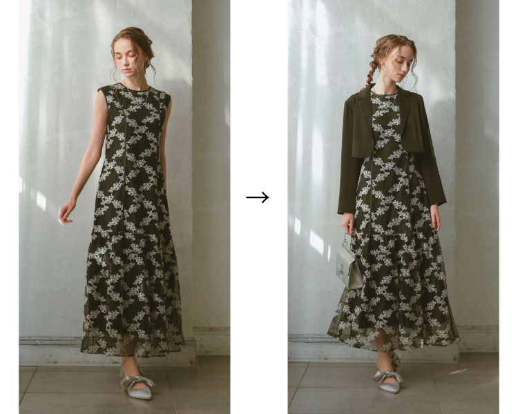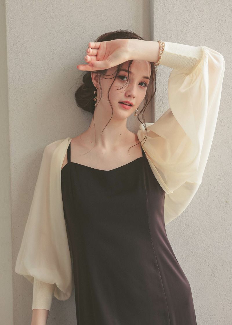 袖付きドレスにも羽織りものが活躍!