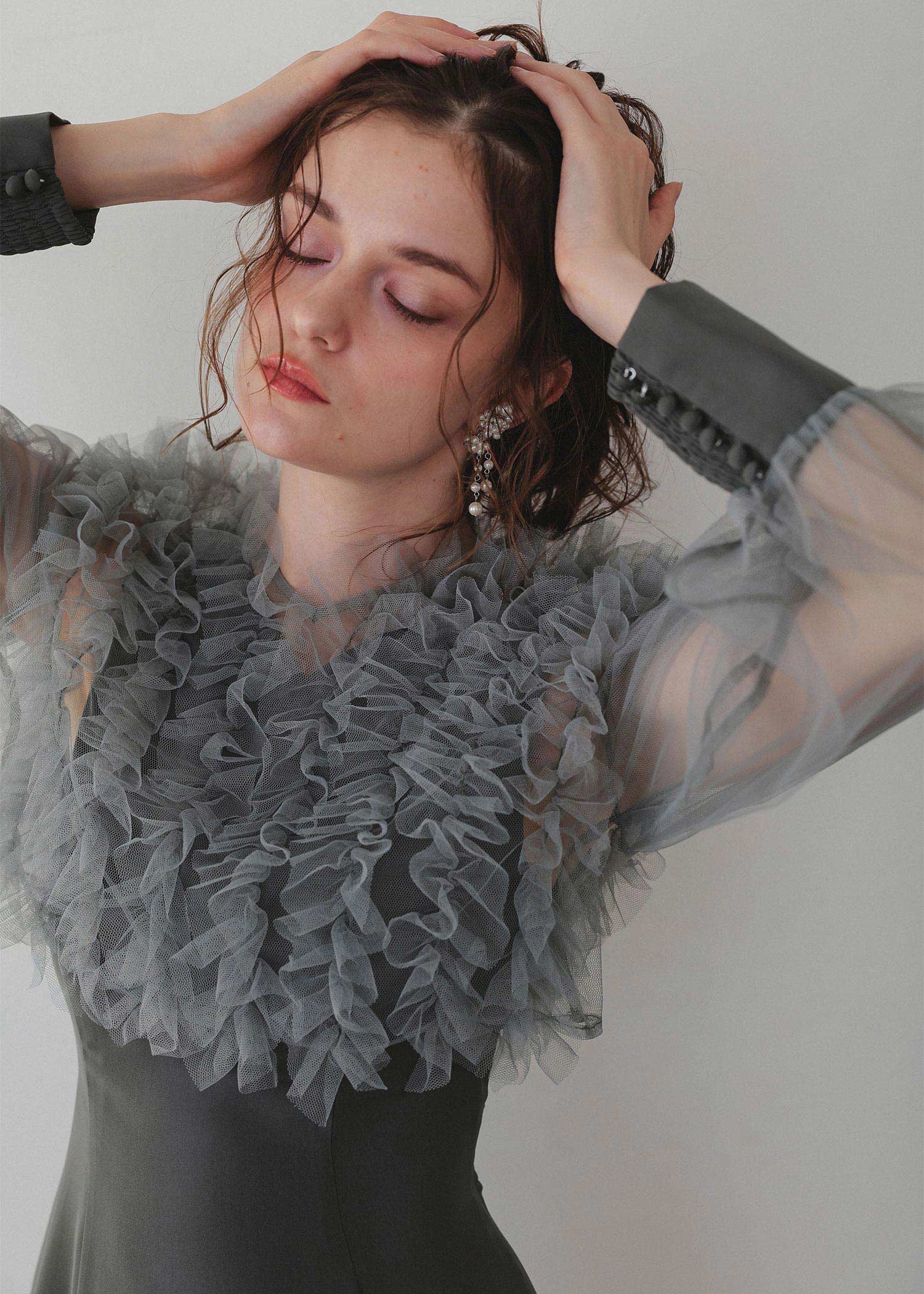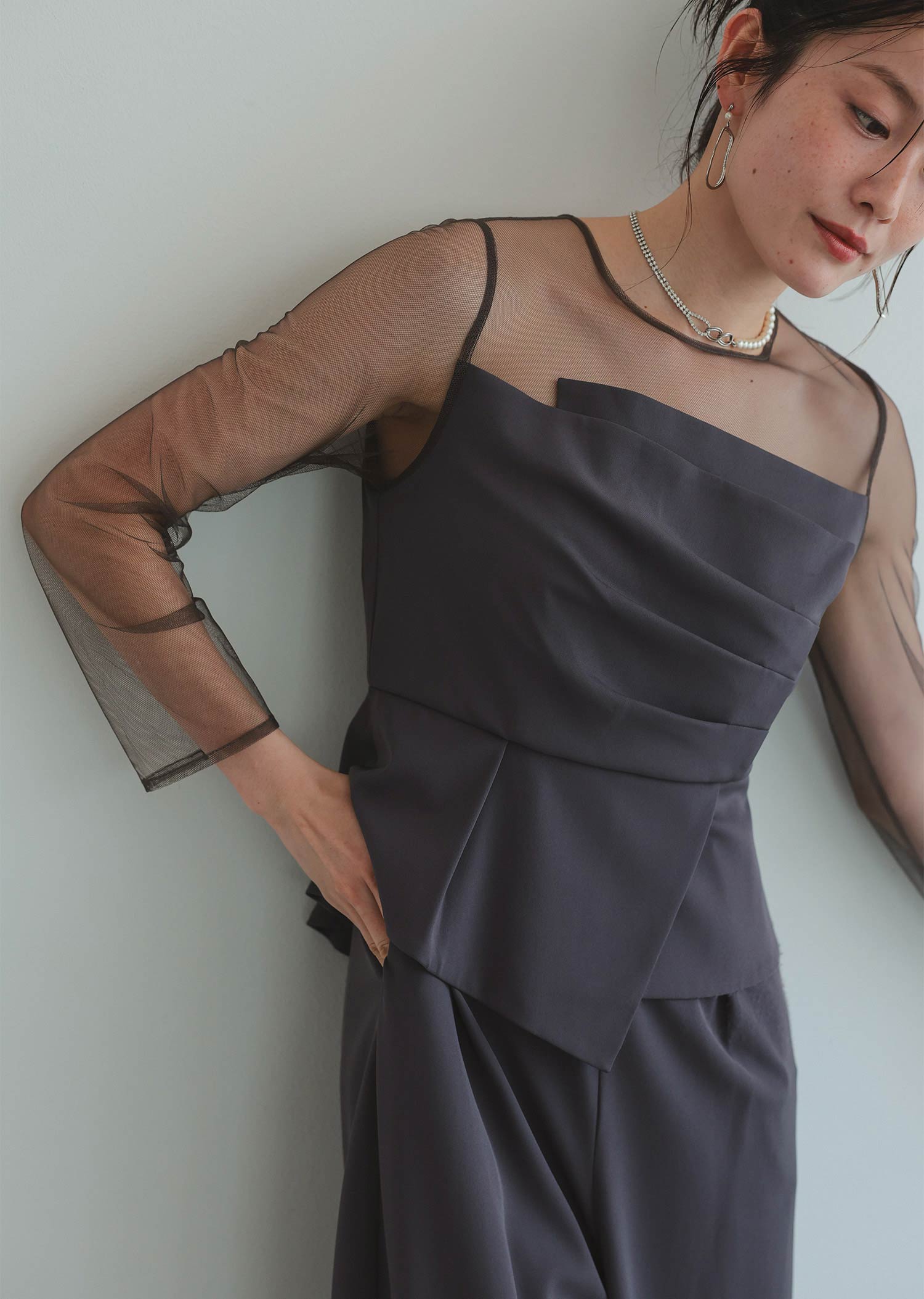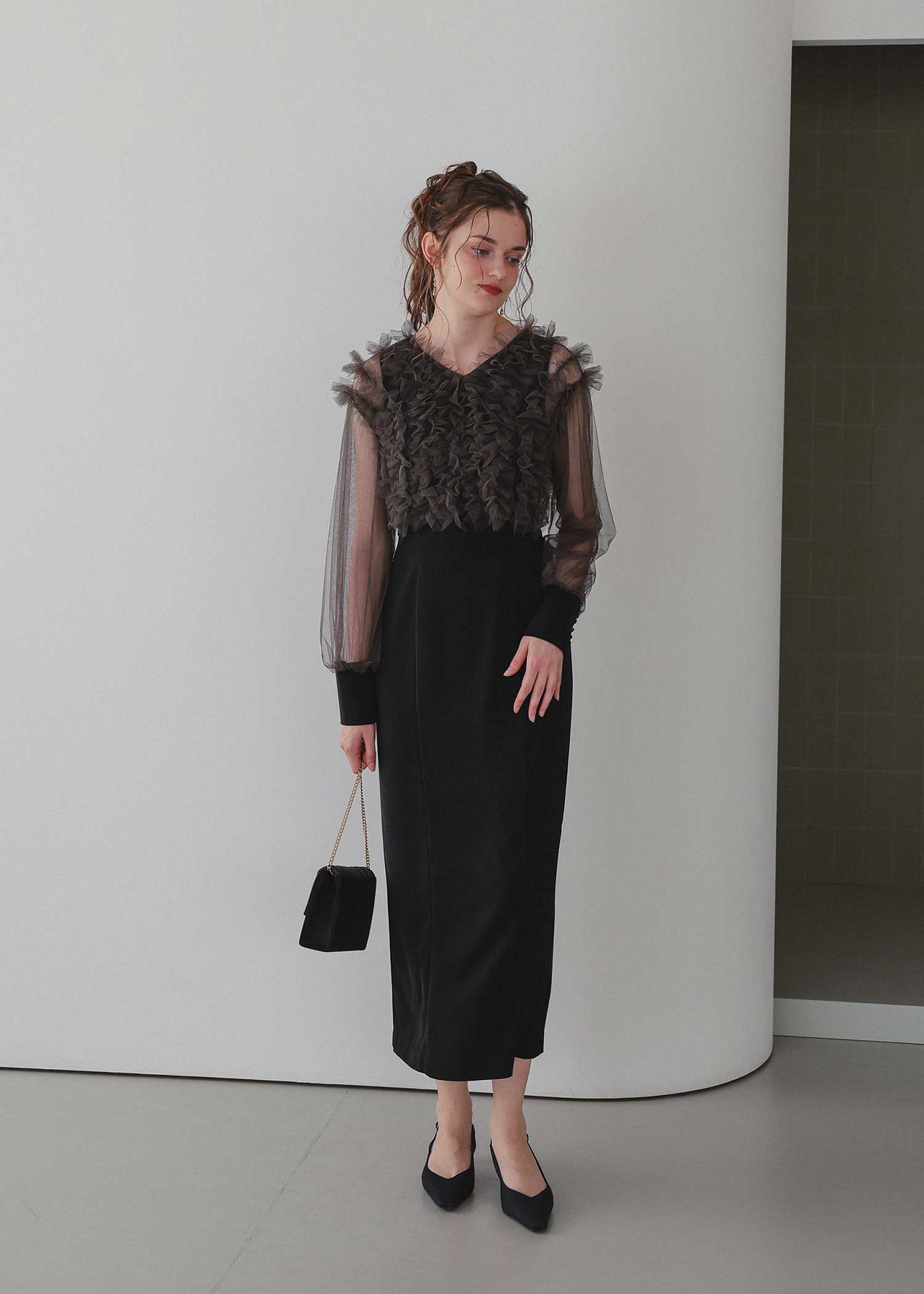 シアー&フリルのブラウスが可愛らしさを引き立て