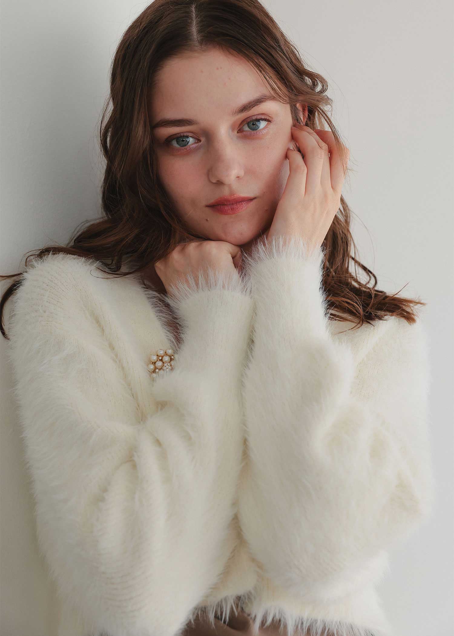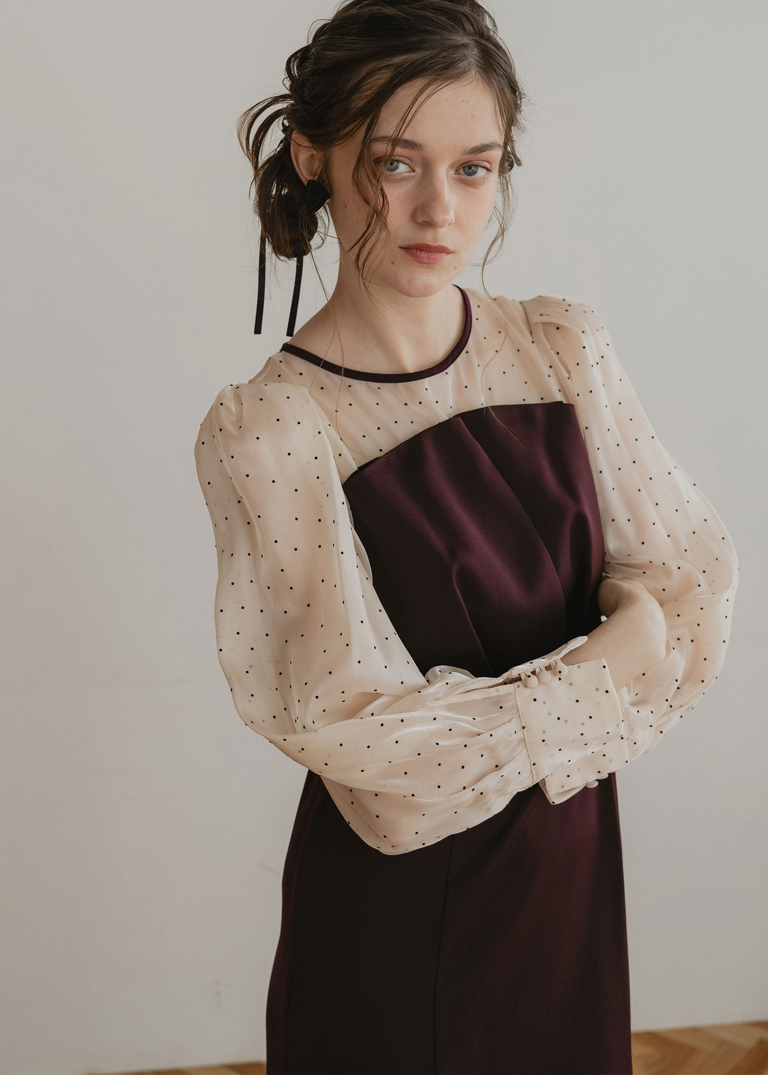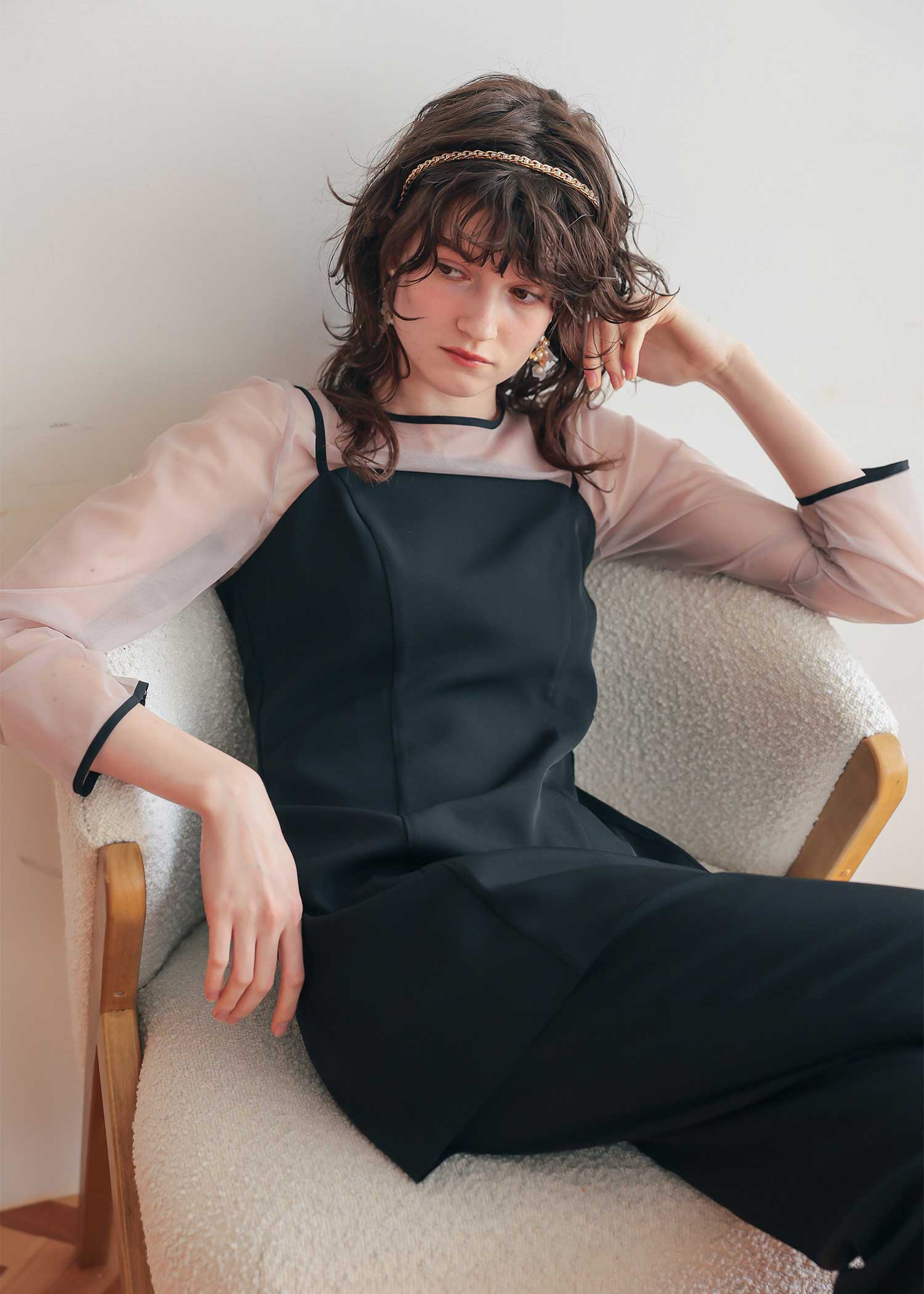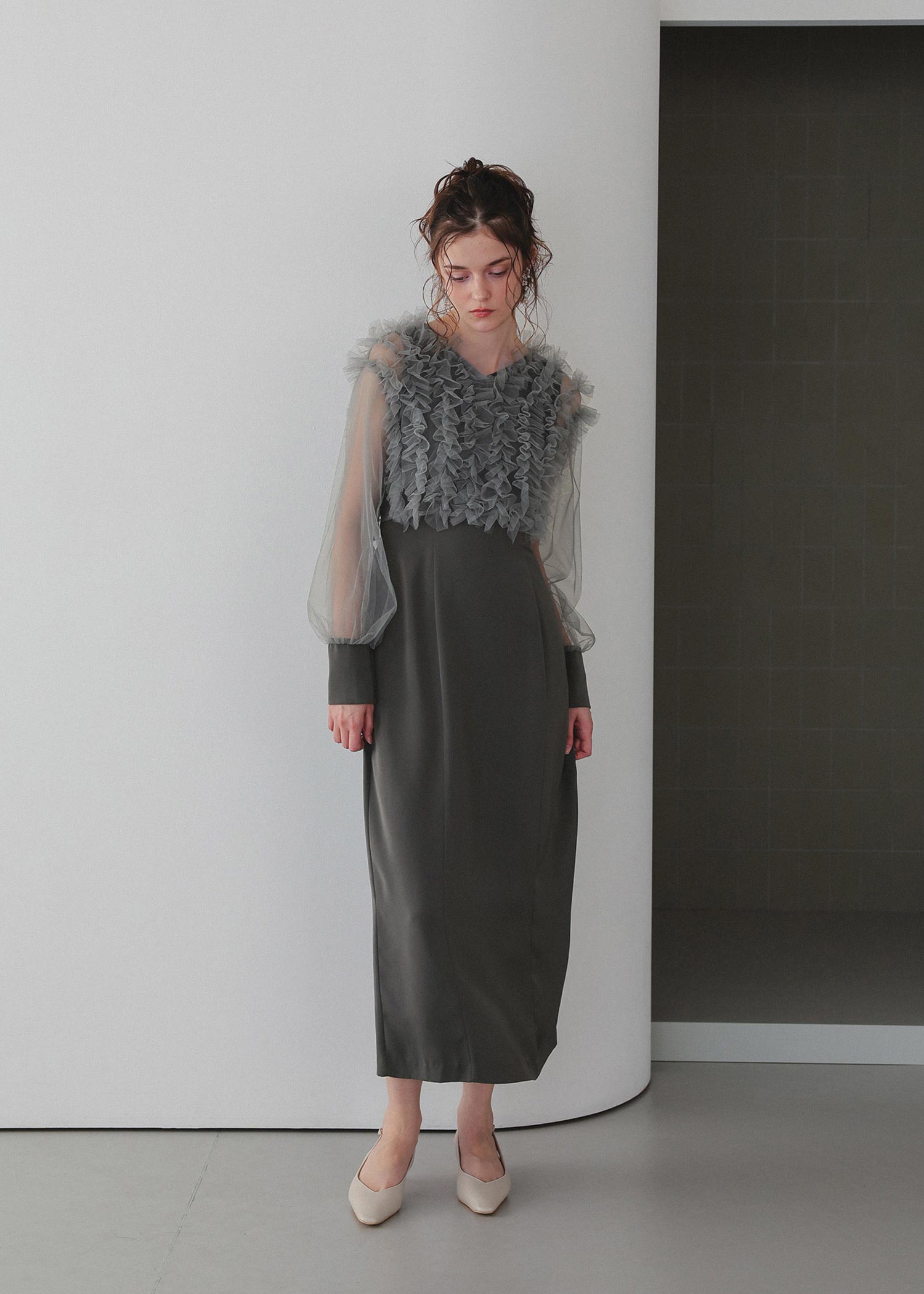 シアー&フリルのブラウスが可愛らしさを引き立て