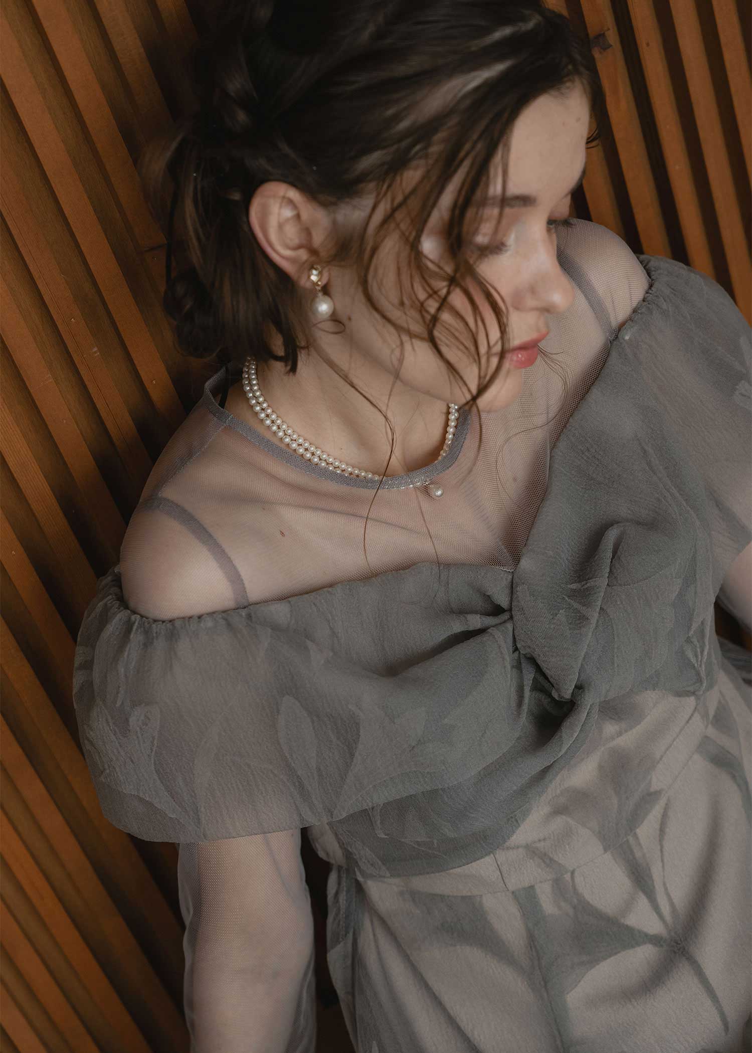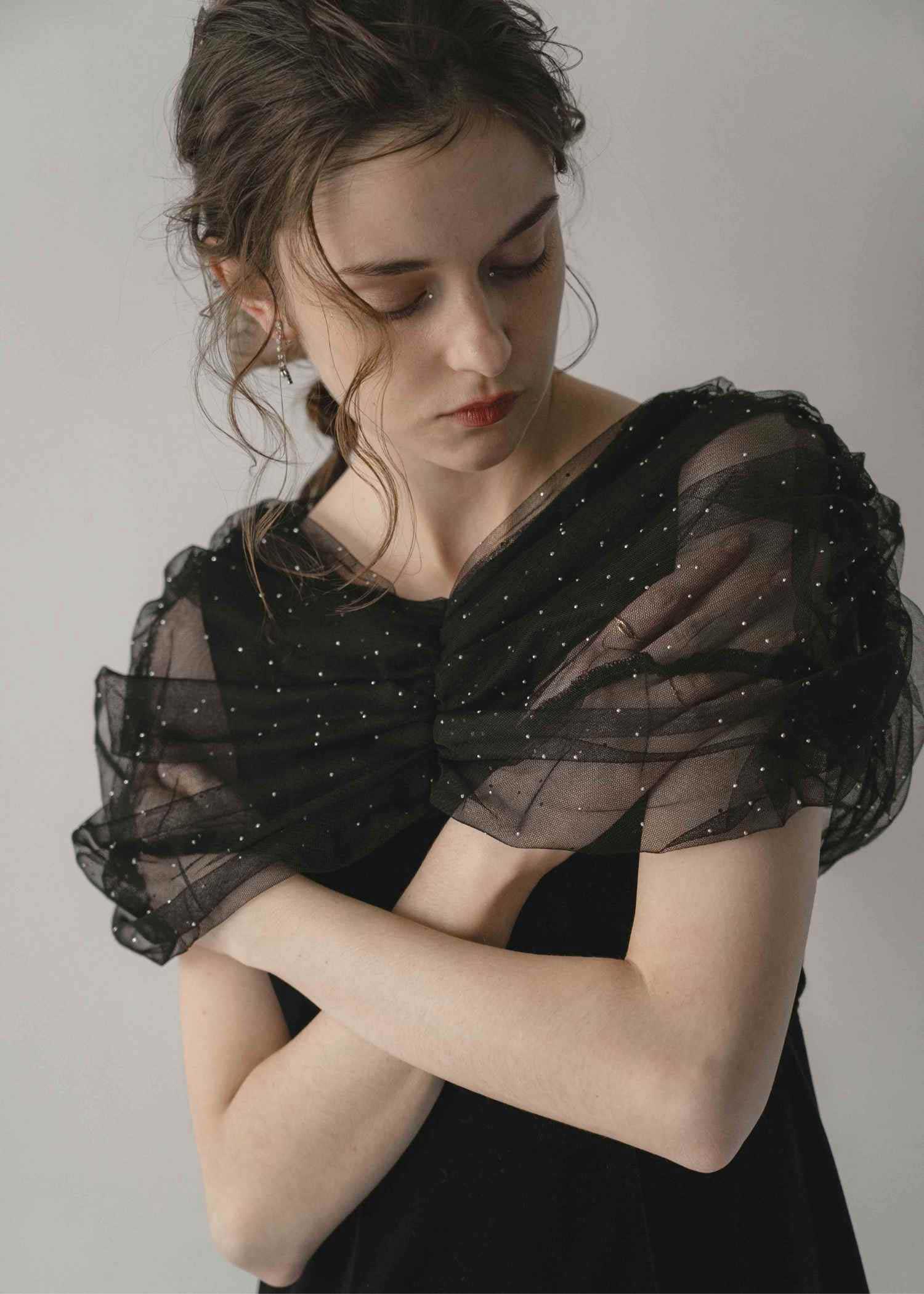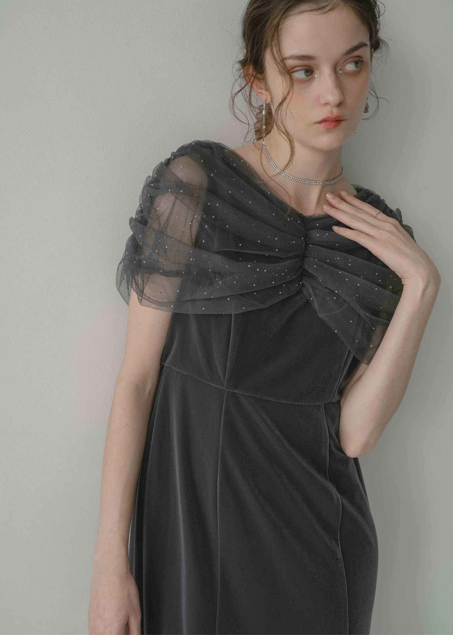 肩の出るドレスはジャケットなどで露出をカバーしたり…